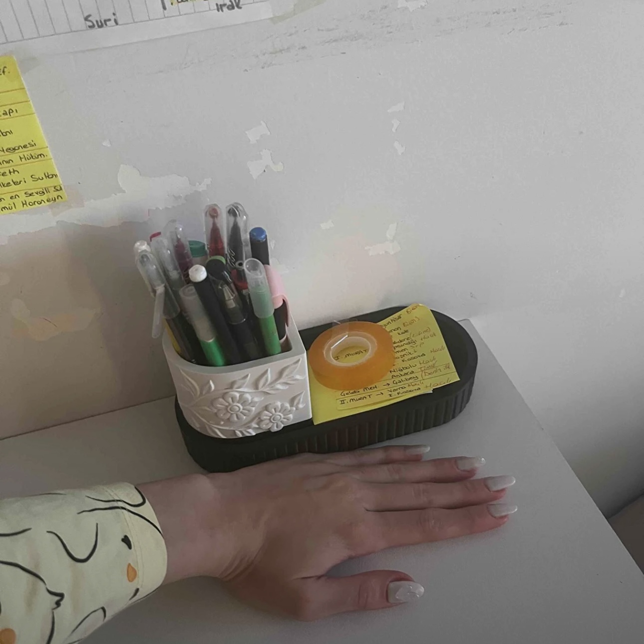 • Yapı: İki ayrı fonksiyona sahip birleşik tasarım: Yüksek Kalemlik ve Düz Tepsi Bölmesi.