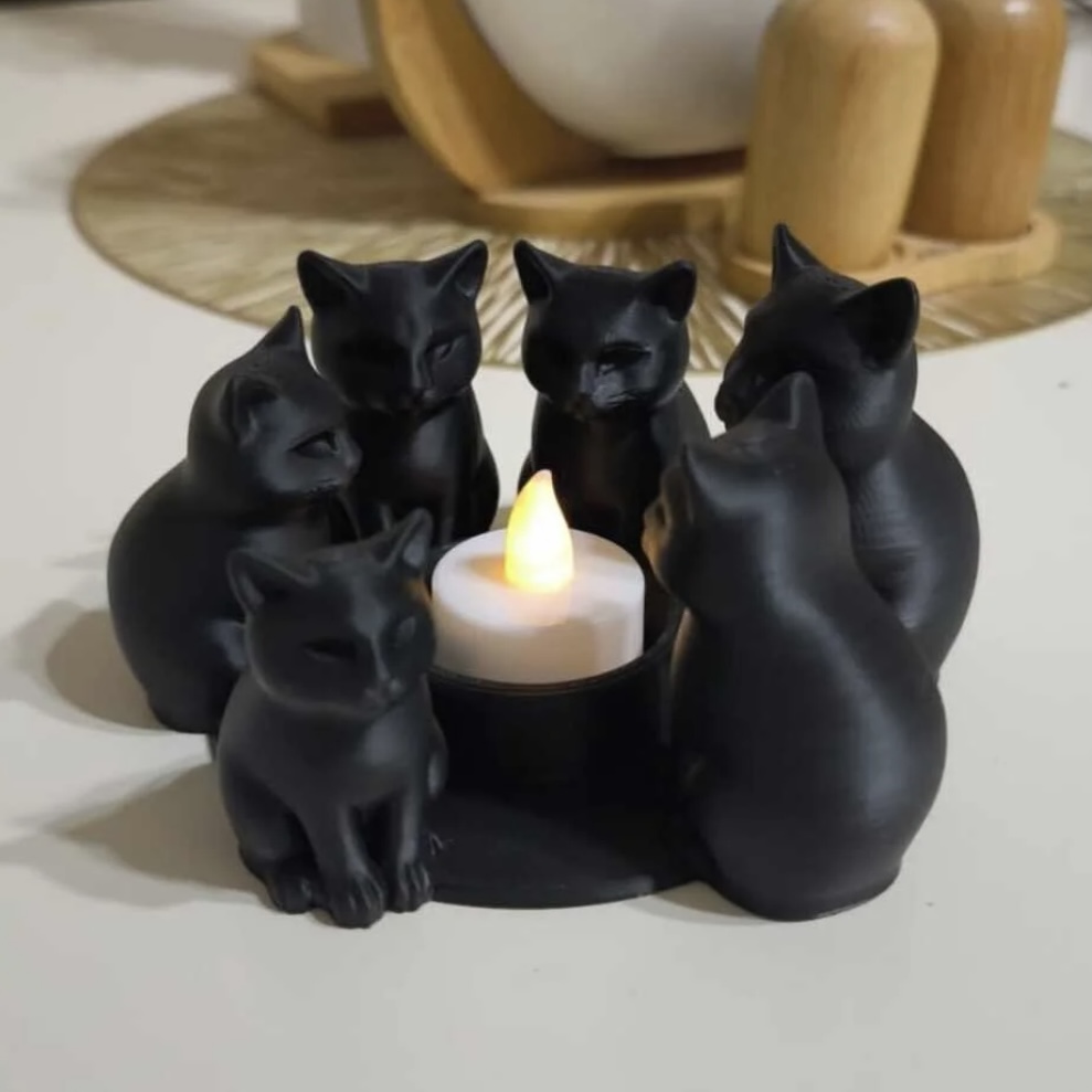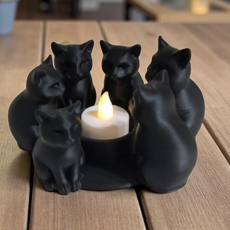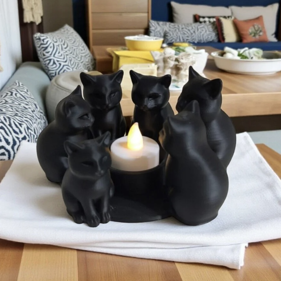 Kara Kedi Meclisi Tealight Mumluk – Mistik ve Dekoratif Şamdan (6 Kedi Figürlü)