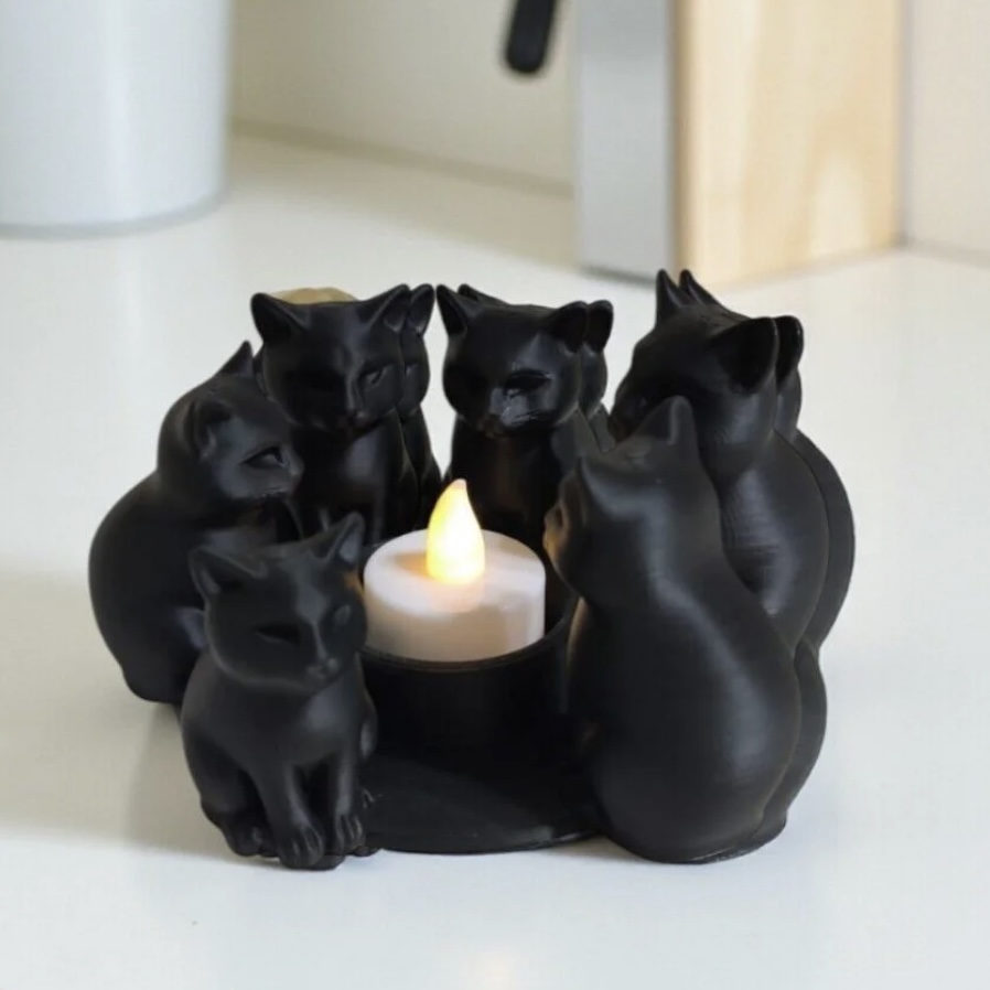 🕯️ Atmosfer Yaratır: Mum ışığı (LED mum veya normal tealight) kedilerin silüetleri arasında yayılarak huzurlu ve sıcak bir ortam oluşturur. Özellikle Cadılar Bayramı, Gotik dekor veya kedi temalı evler için idealdir.