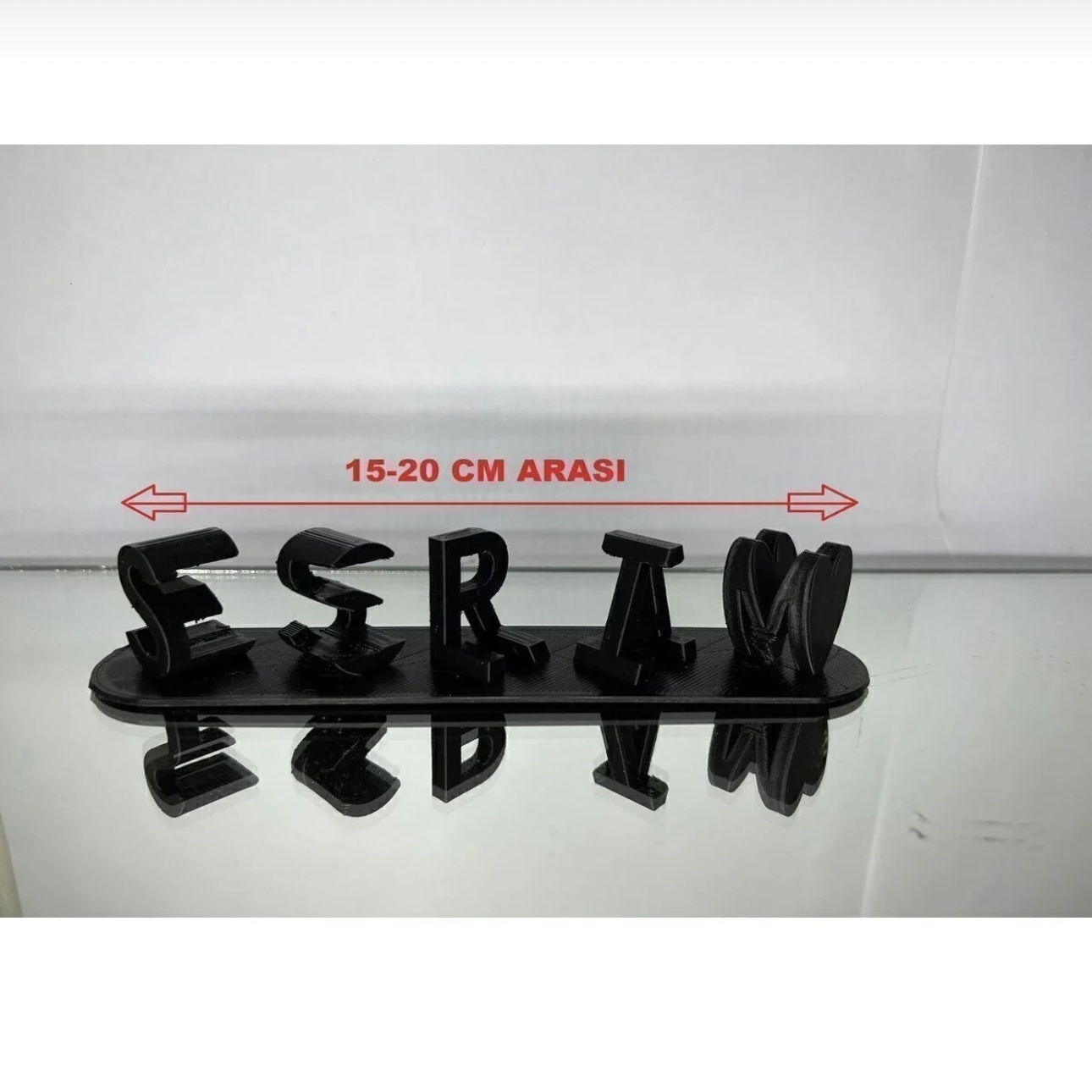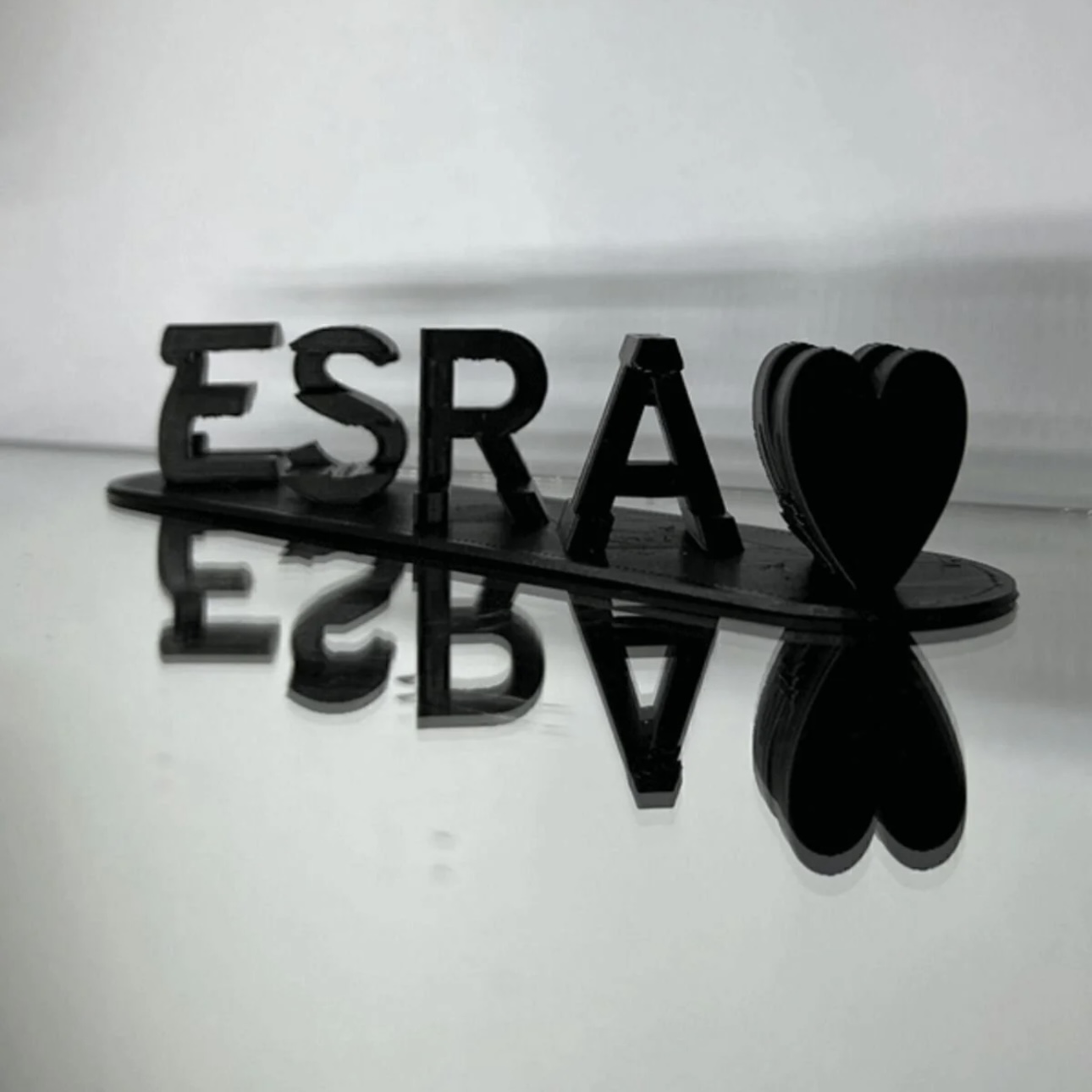Sevdiklerinize özel, kişiye özel isim yazılı masaüstü dekorasyon ürünü. Siyah, modern ve şık bir tasarıma sahip olan bu dekoratif obje, isimleri ve isteğe bağlı olarak eklenen kalp detayını yansıtan bir taban üzerine monte edilmiştir. İsim ve kalp figürü 3D baskı teknolojisiyle üretilmiş olup, 15-20 cm arası boyutlarda kişiselleştirilebilir. Yatak odası komodini, çalışma masası veya kitaplıklar için mükemmel bir hediyelik eşya ve dekoratif objedir. Sevgililer Günü, yıl dönümü, doğum günü veya sadece sevginizi göstermek için anlamlı bir seçenektir.
