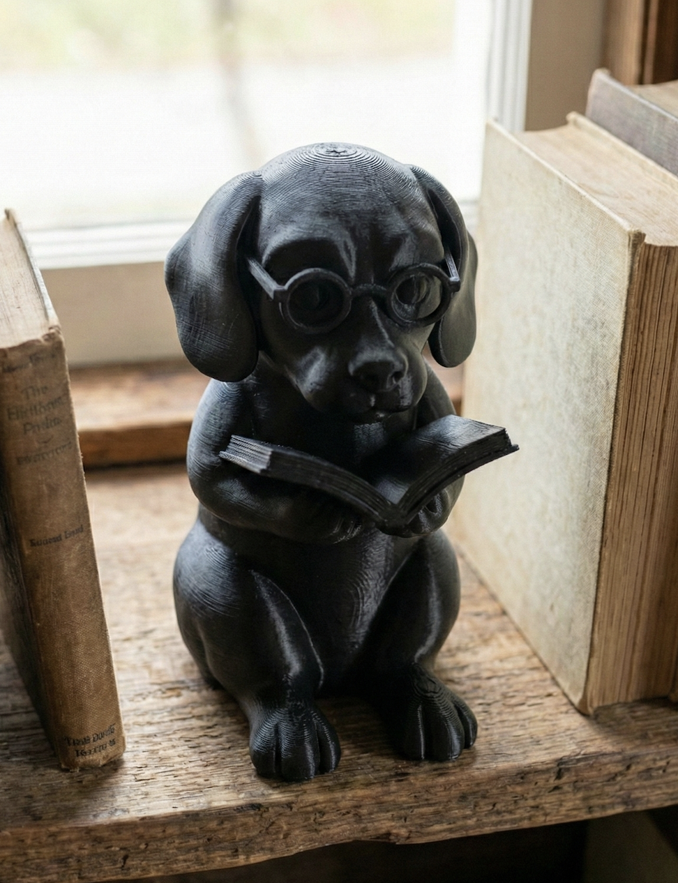 Kitap okuyan sevimli köpek tasarımıyla dikkat çeken bu dekoratif biblo, kitaplıklar ve çalışma alanları için hem eğlenceli hem de zarif bir atmosfer oluşturur. Gözlüklü köpek figürünün elinde tuttuğu kitap detayı, özellikle kitap severler ve kütüphane dekorasyonu sevenler için benzersiz bir dekor parçası sunar.