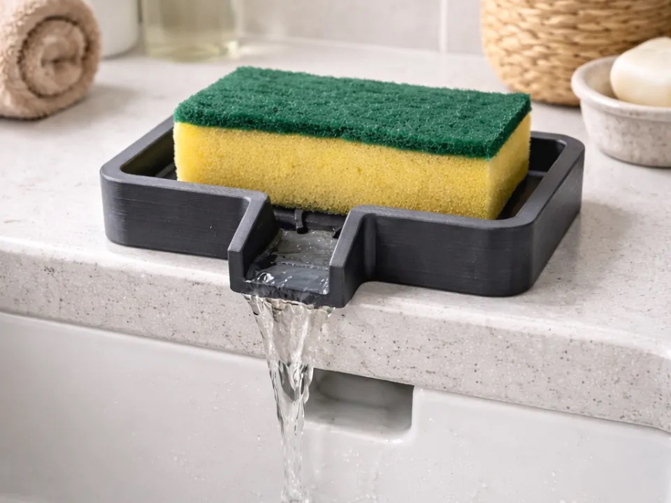 Mutfakta hijyen ve düzen sağlamak için tasarlanan lavabo kenarı süngerlik, bulaşık süngerinizin hızlı kurumasına yardımcı olan pratik bir çözümdür. Özel su tahliye kanalı sayesinde süngerde biriken su doğrudan lavaboya akarak tezgah üzerinde su birikmesini önler.